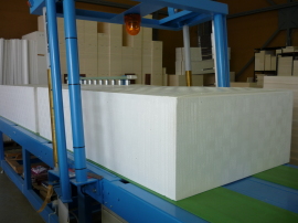 ○詳細大きなブロック状の発泡スチロールを、セットしたニクロム線で均等にカットしたものです。建物の断熱材や、商品梱包の際の緩衝材などに広く使用されています。