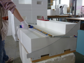 ○詳細複雑なものや特殊な形状のものを製造するための型枠を製造します。手加工やNC加工などを用いて発泡スチロールを加工致します。
