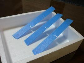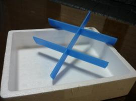 Pボードを抜き型でプレスをかけ、仕切り板を製作しました。既存の発泡箱では大きすぎる、中を小さく仕切りたい等のご要望にお答えします。